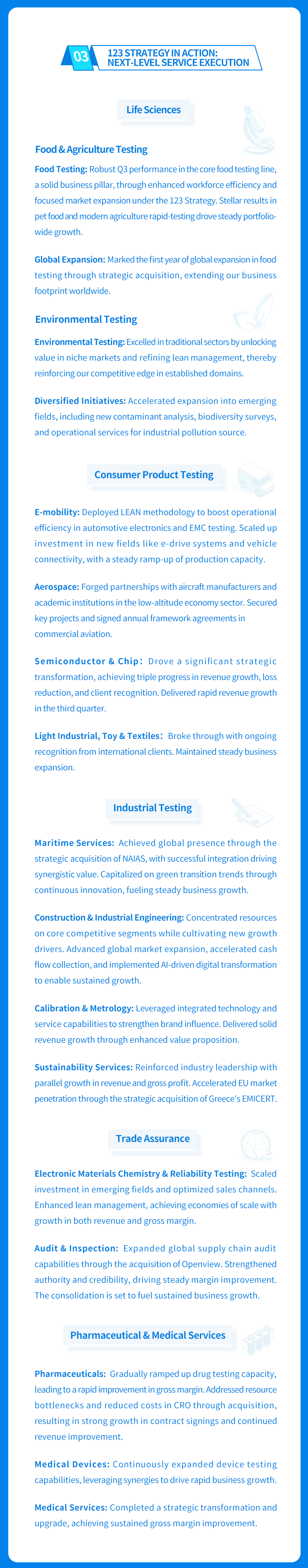 Our service capabilties cover the upstream and downstream of the supply chain including textile and apparel,toys,electronic appliances,medical health,food...andother industries.
