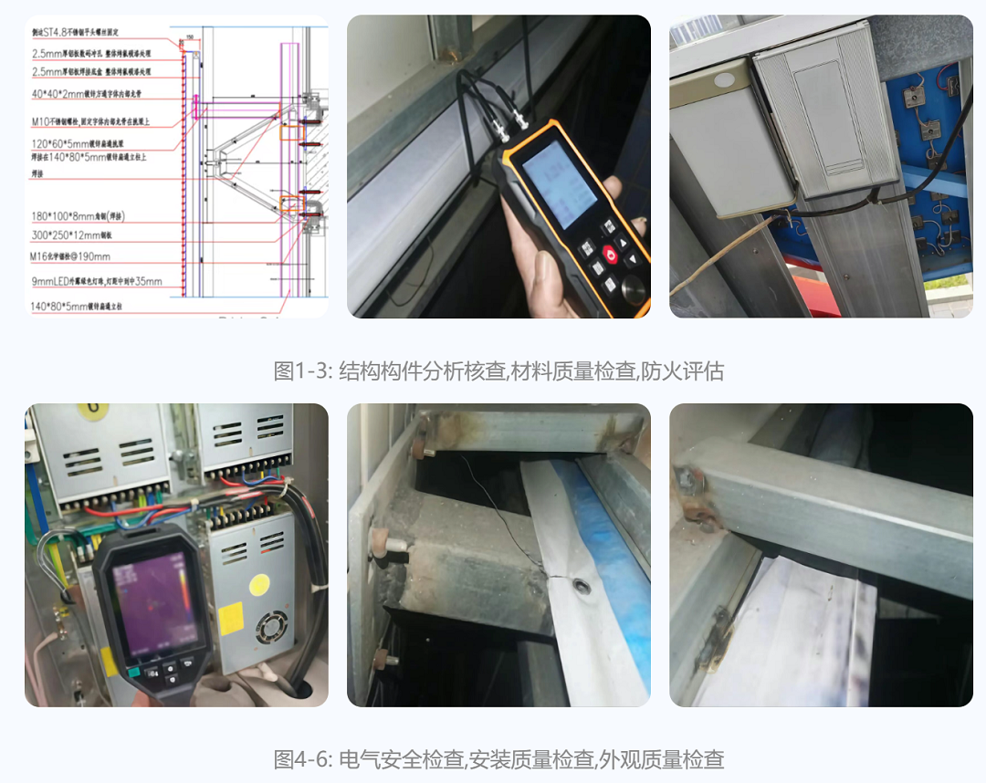从结构安全、材料状态,到电气安全、安装质量,再到防火评估与外观防护,实现系统化风险评估。