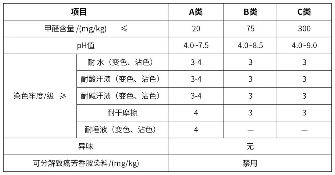 注意: 内衣、袜子等贴身衣物,至少应满足B类要求。