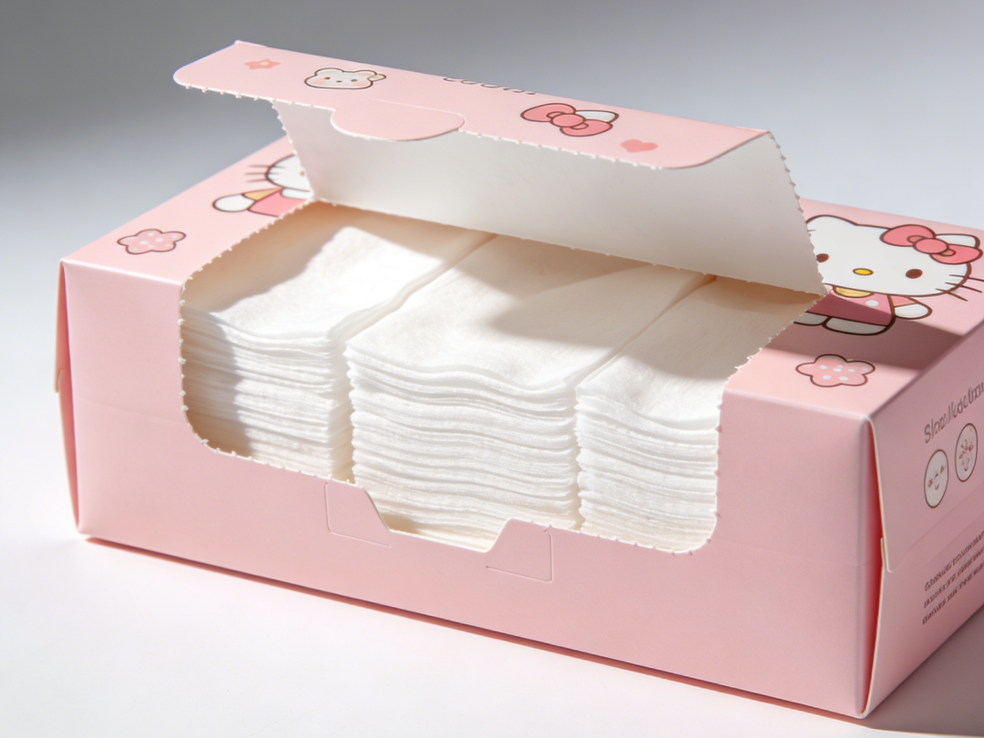 优质化妆棉应该质地均匀、边缘整齐,轻轻拉扯时不易撕裂、不掉絮。吸水性测试也很简单:滴几滴水,观察吸收速度和扩散均匀度。