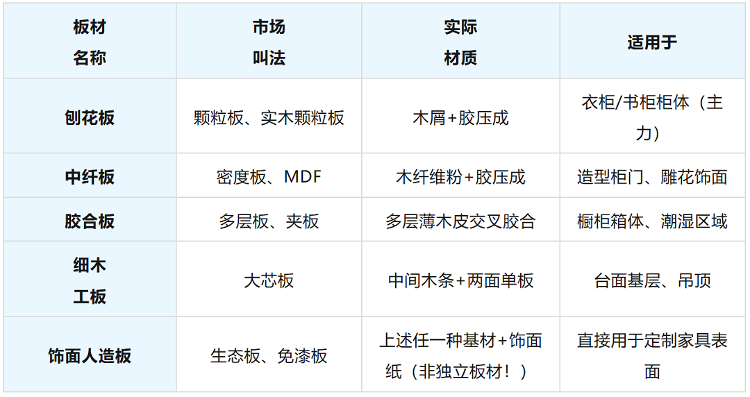 目前市面上主流人造板有8–10种,但装修中真正高频接触的,其实就这5种:
