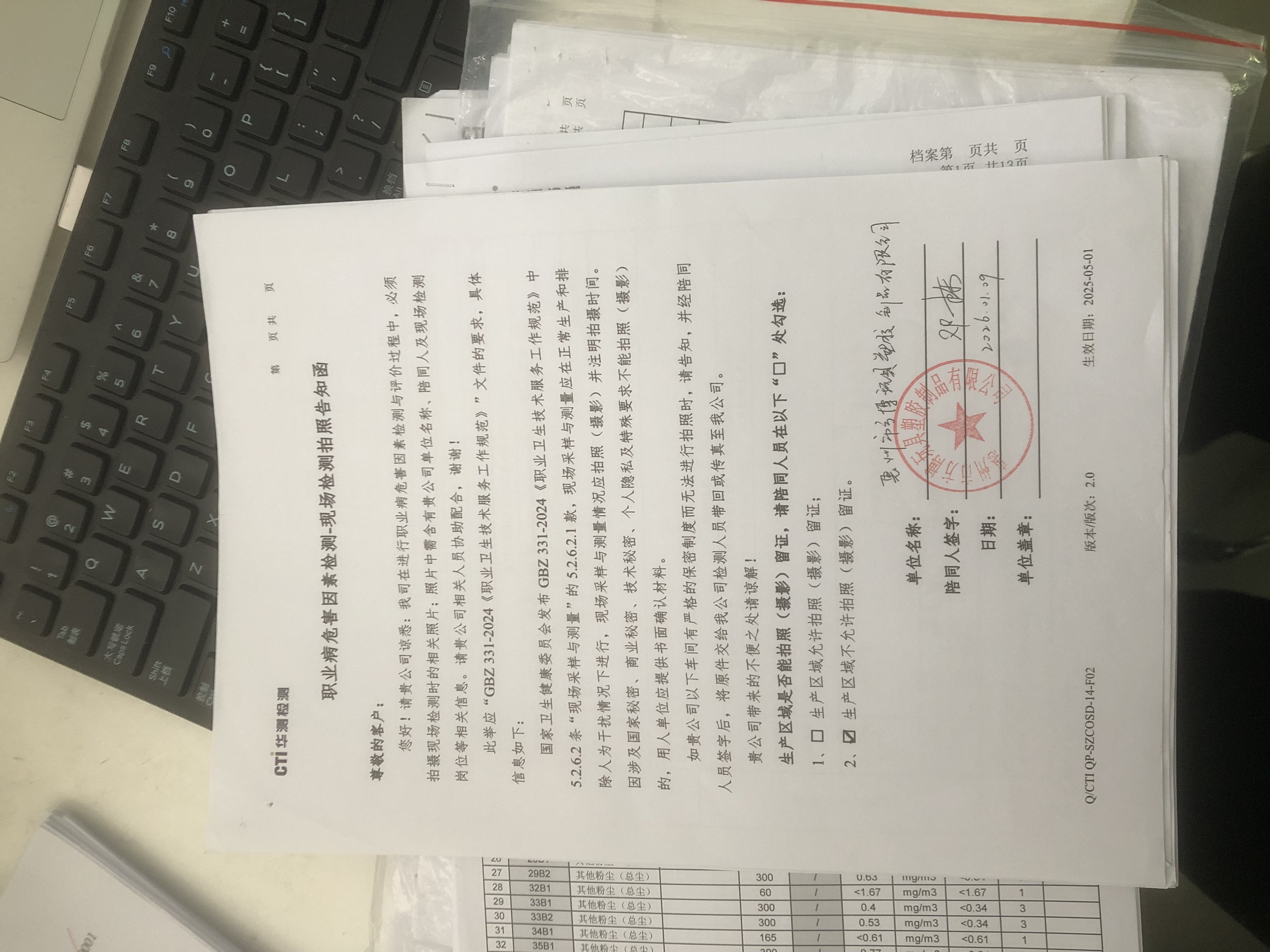 工作内容 时间 人员 陪同人 现场调查 2025-12-30 李文海、刘威 邓* 现场采样/测量 2026-01-09 梁财源、邱杰法 邓* -